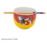 This KPop Demon Hunters Ramen Bowl with Chopsticks is an officially licensed product from Cinereplicas. The bowl is made of ceramic and the chopsticks are bamboo.